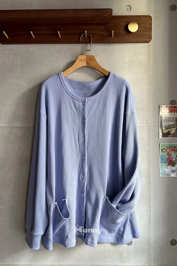hunny756 獨家設計 多WAY可朗芙方口袋雙面排釦T/罩衫 黑/夕陽粉紫/雲朵奶杏