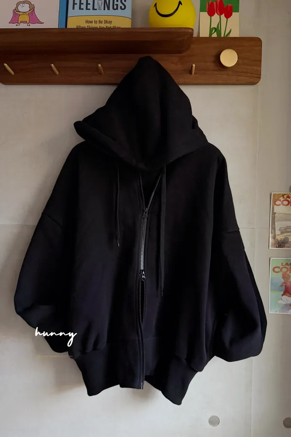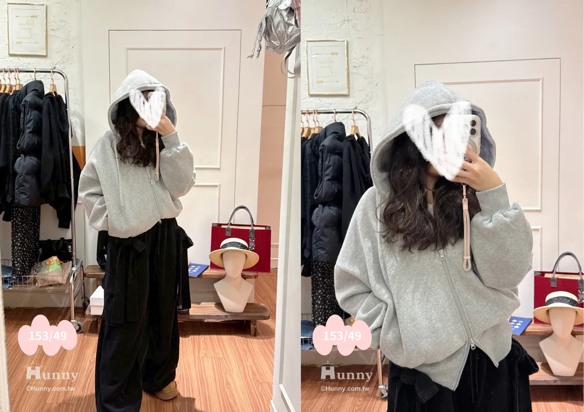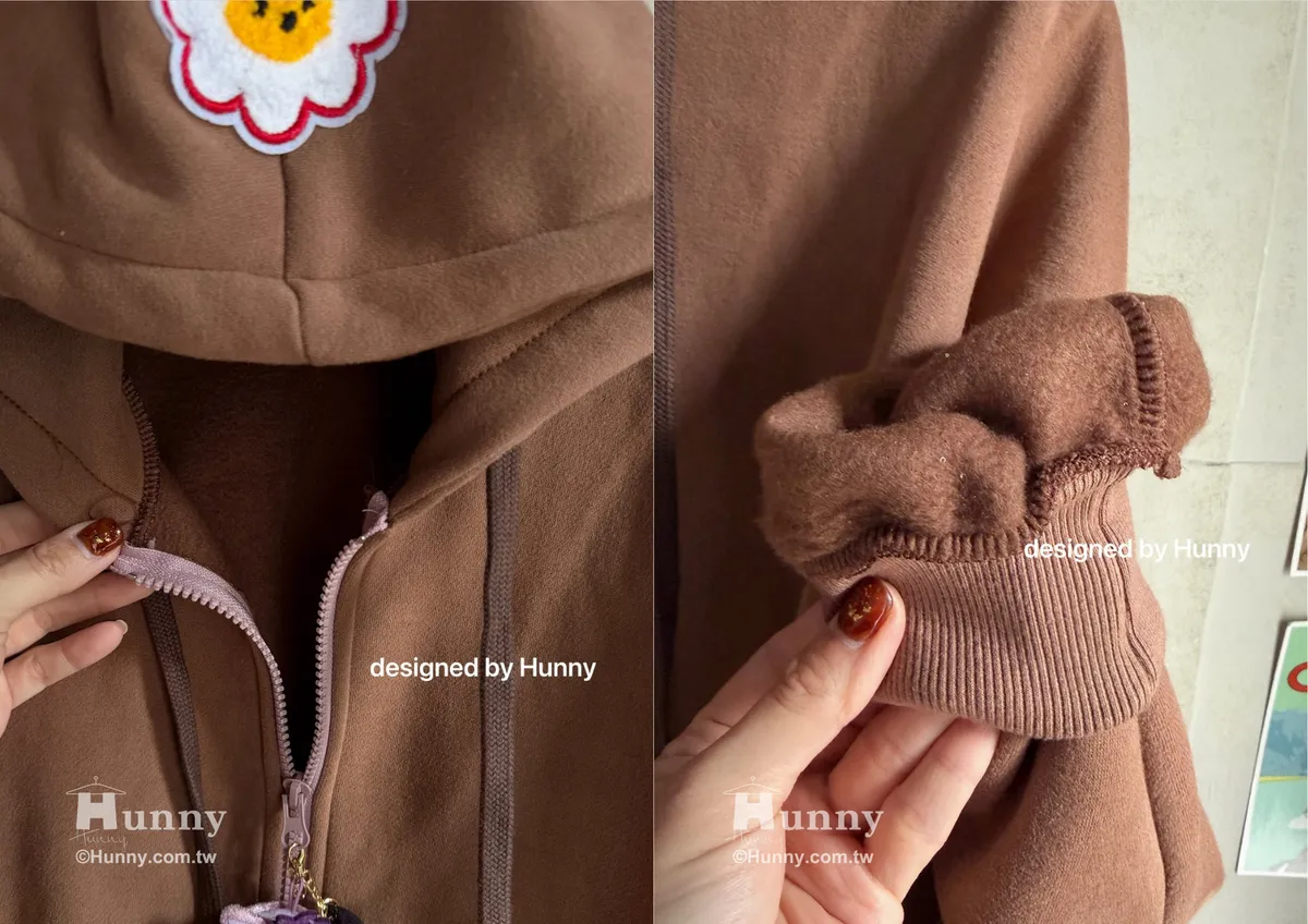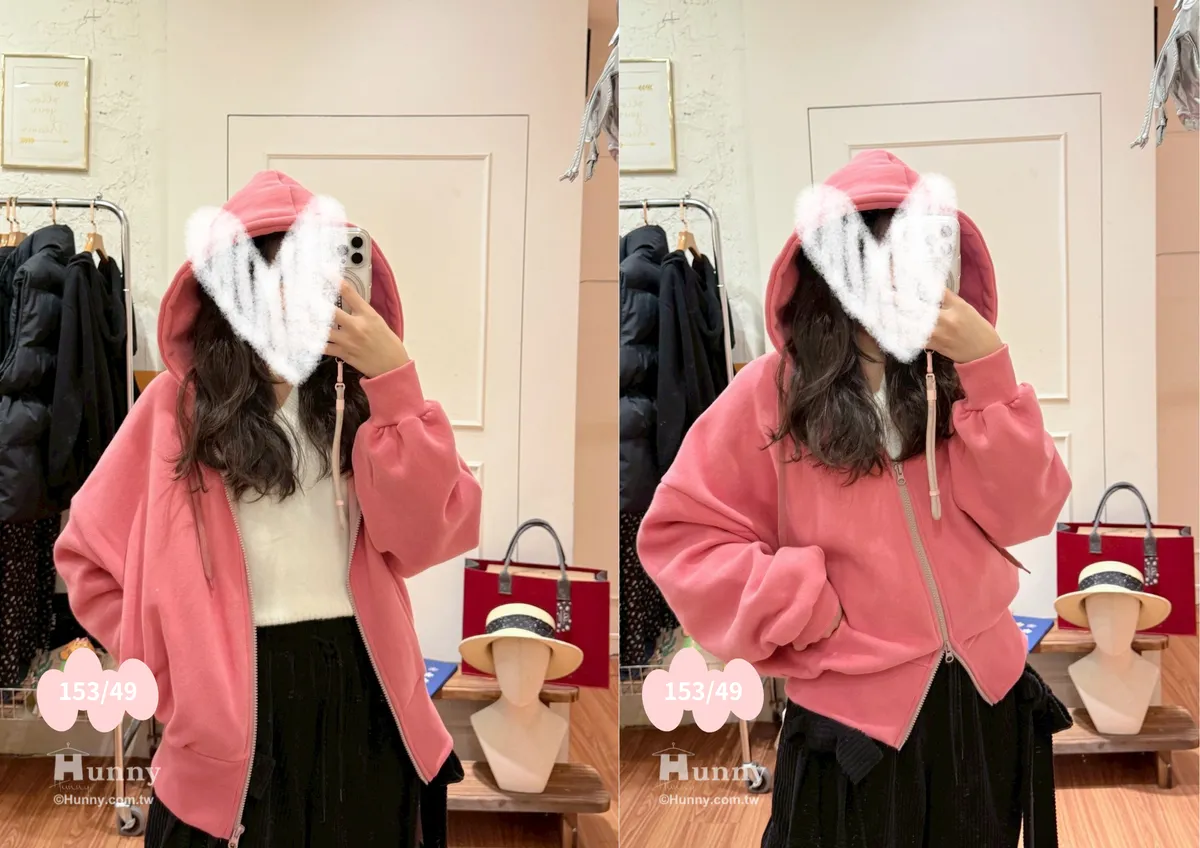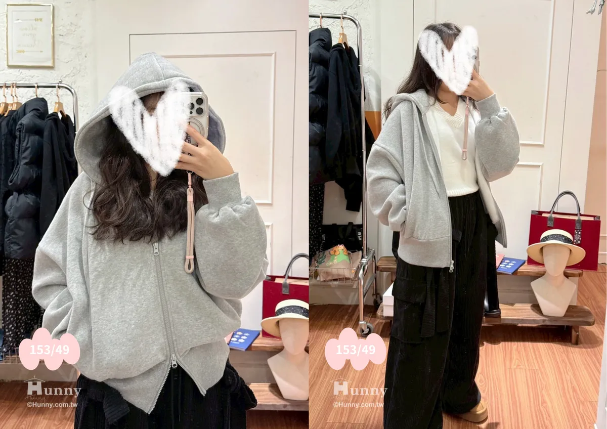 hunny788 世界唯一雙拉鏈厚棉刷毛連帽魟魚外 黑/蜜桃粉/灰 現貨