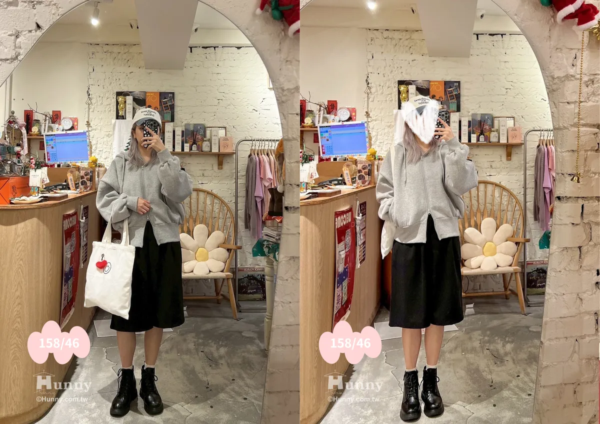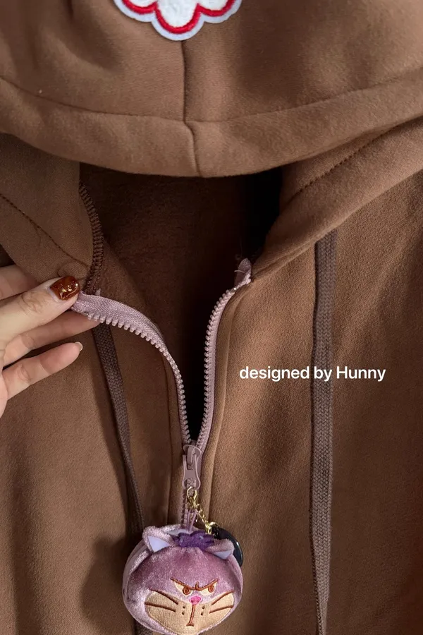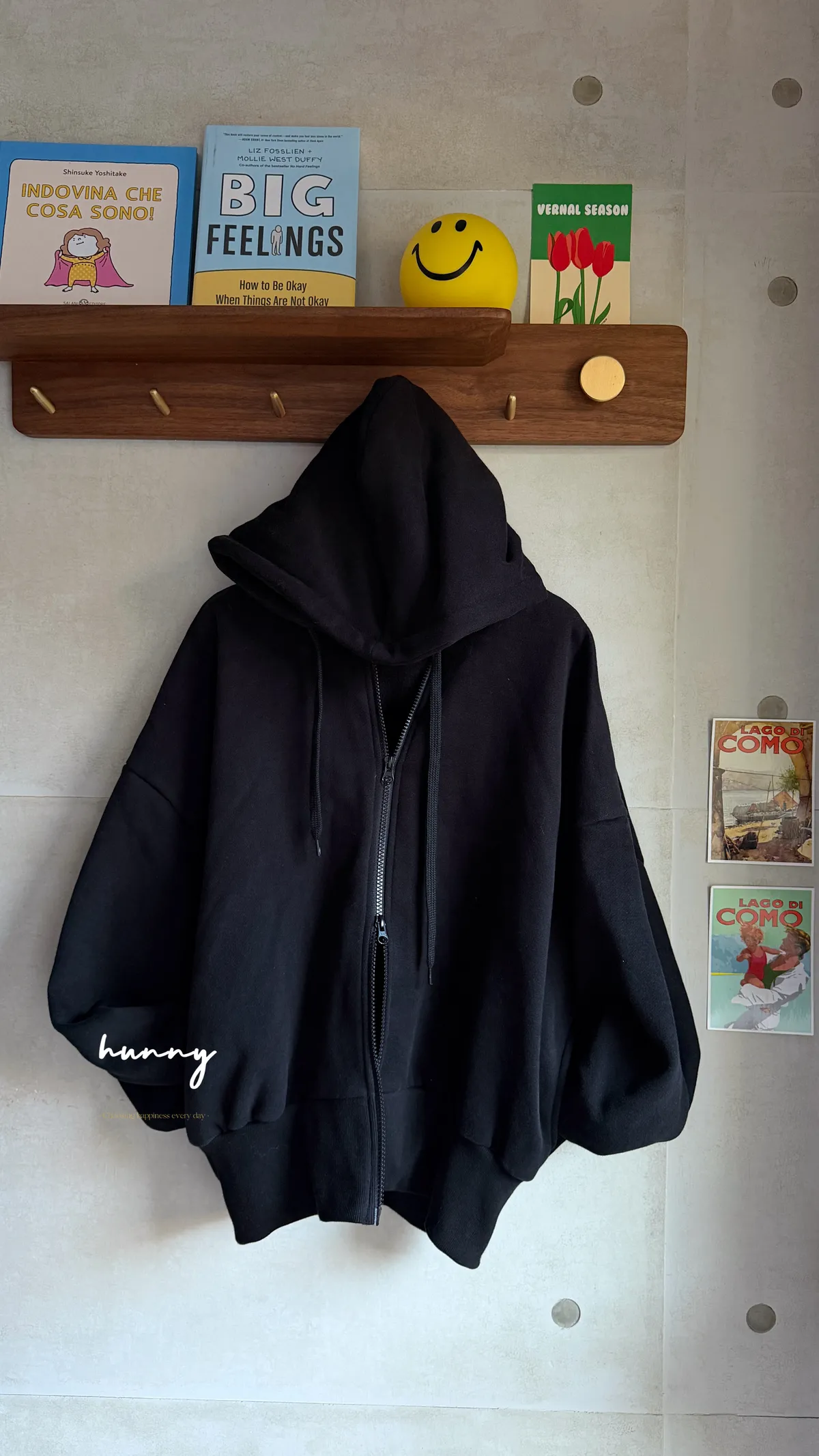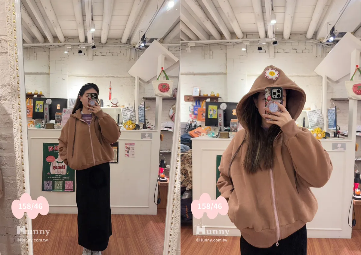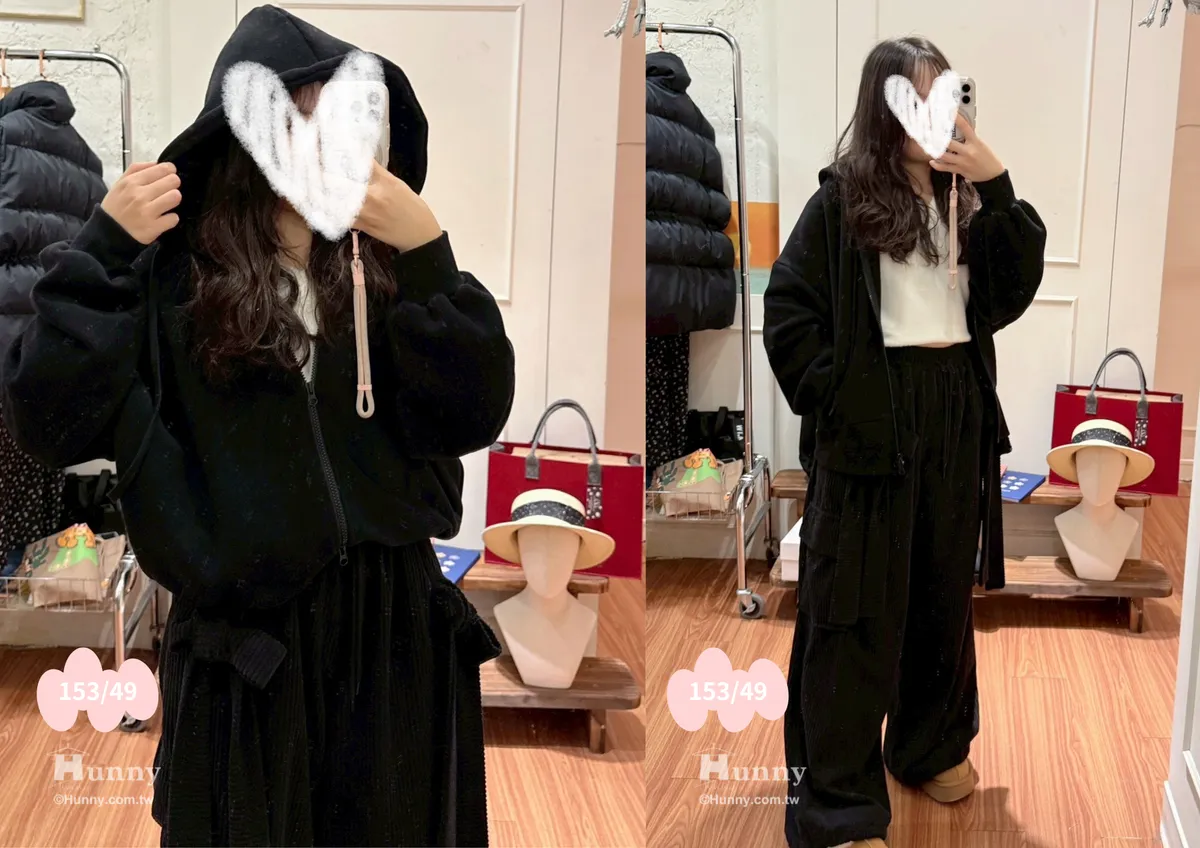 hunny788 世界唯一雙拉鏈厚棉刷毛連帽魟魚外 黑/蜜桃粉/灰 現貨