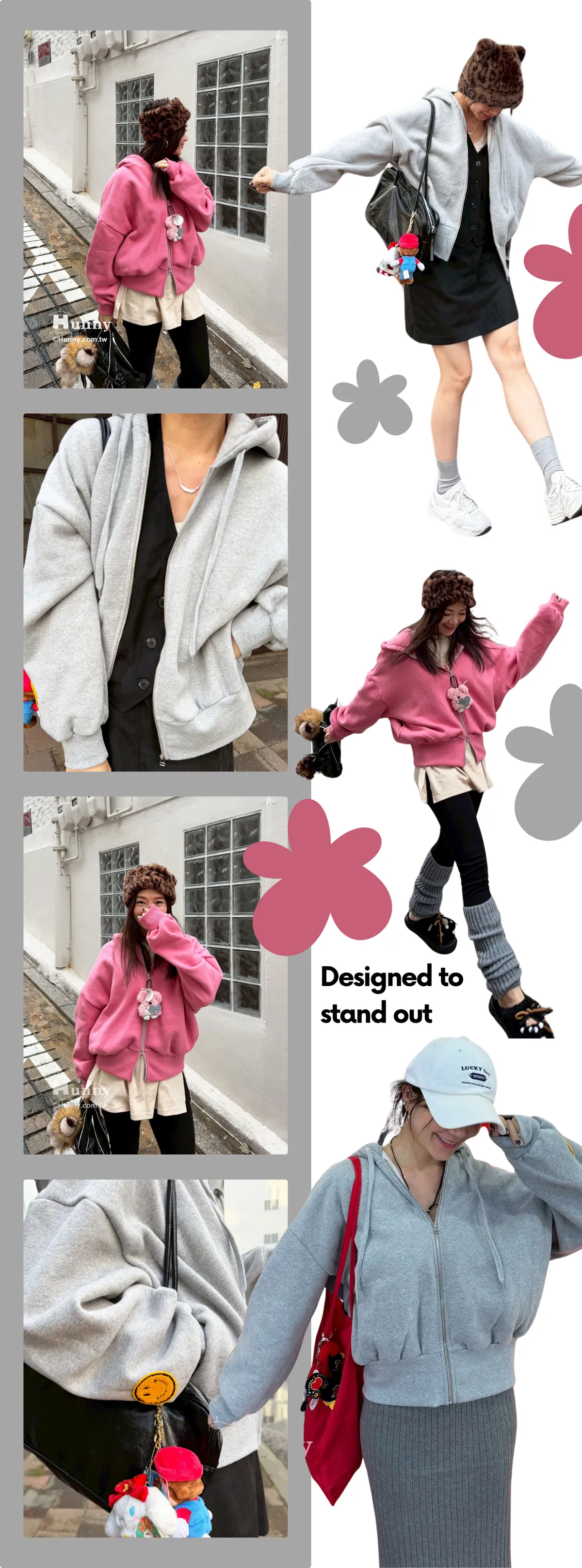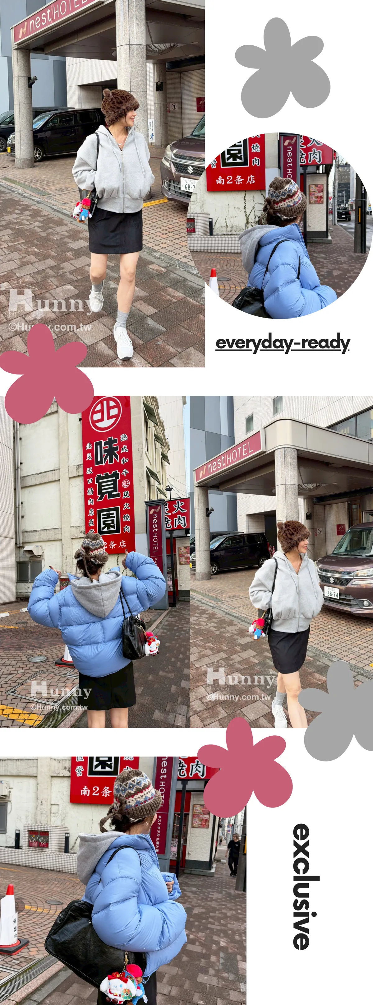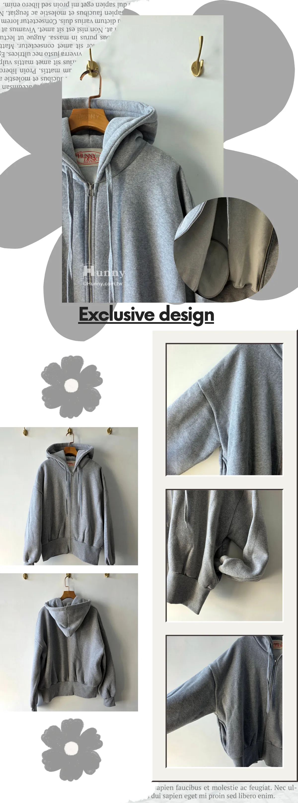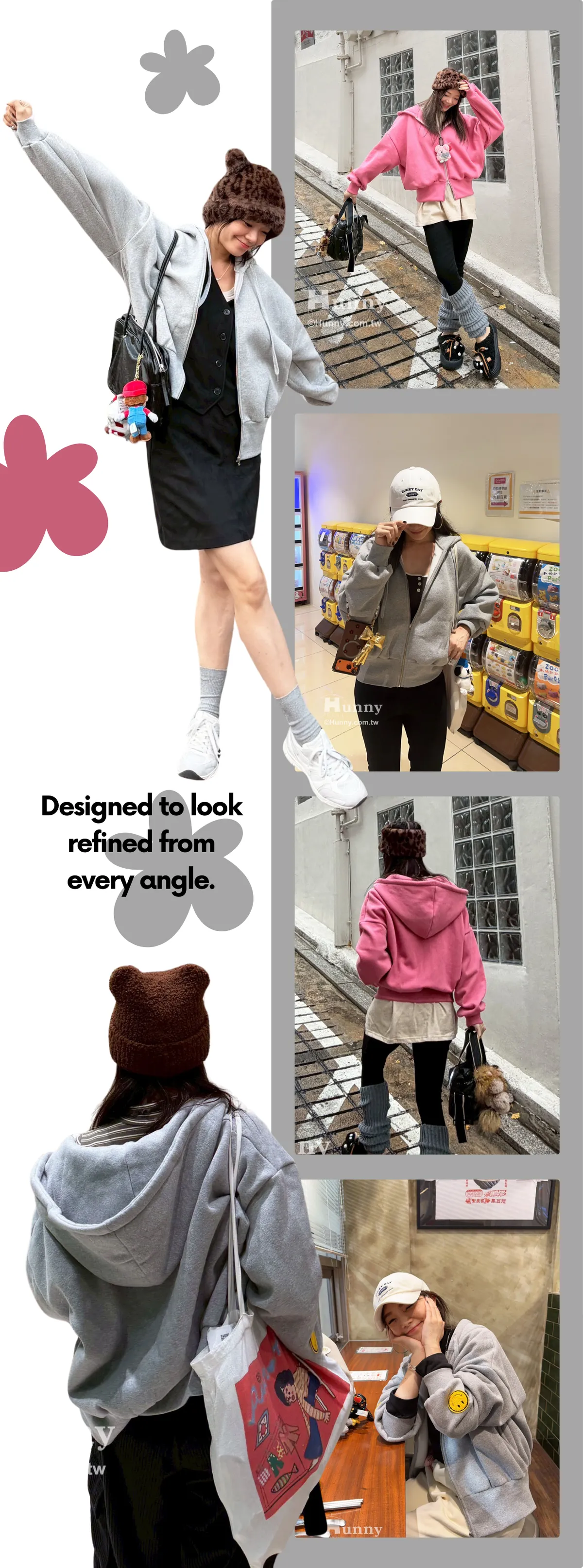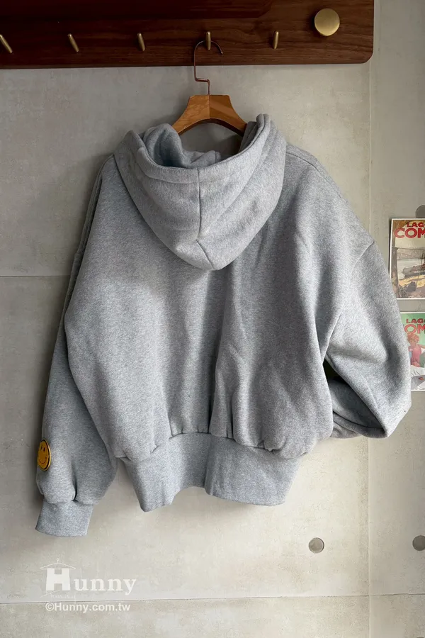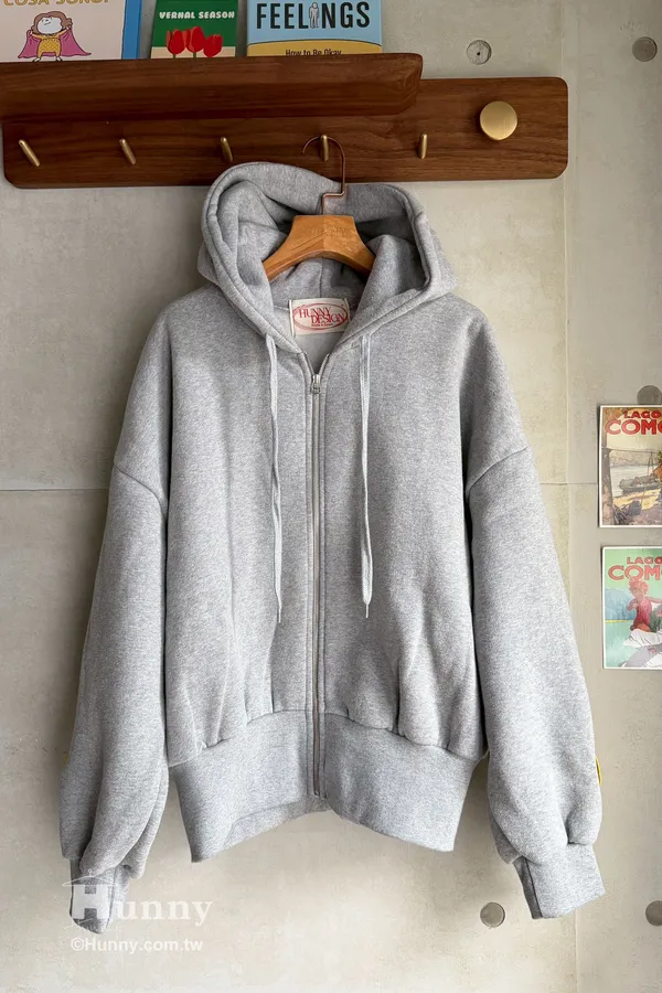 hunny788 世界唯一雙拉鏈厚棉刷毛連帽魟魚外 黑/蜜桃粉/灰
