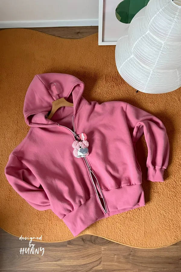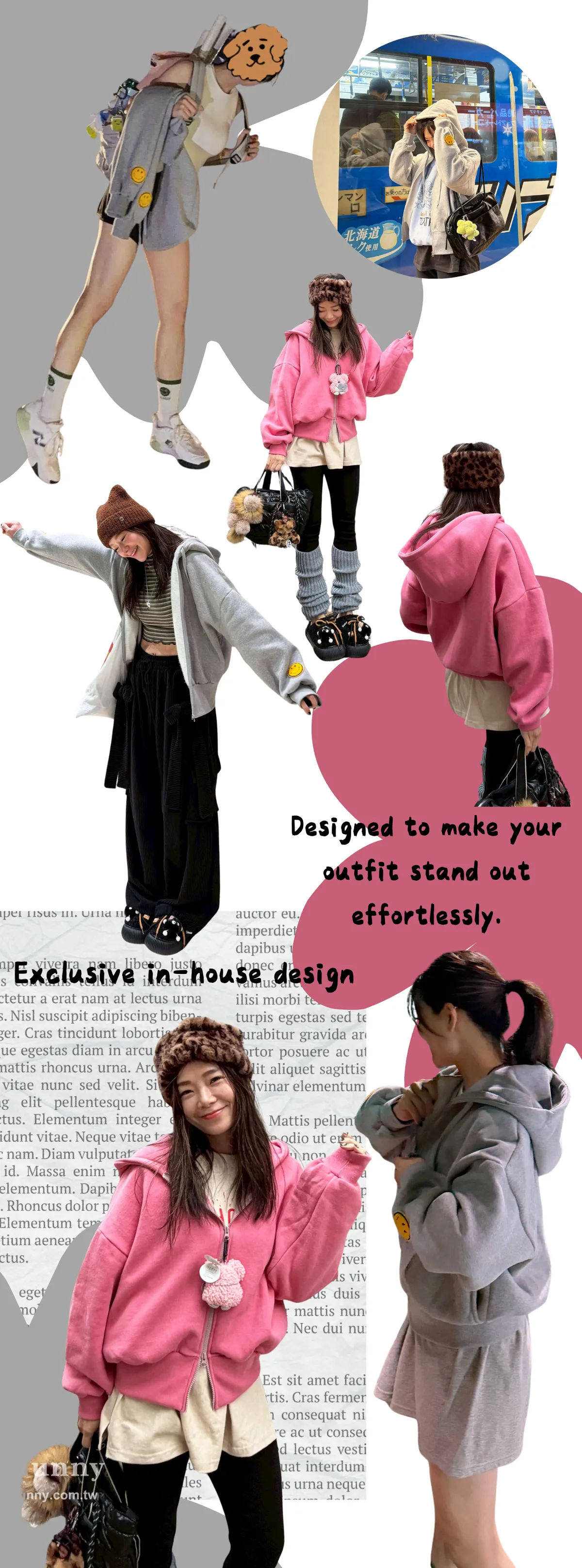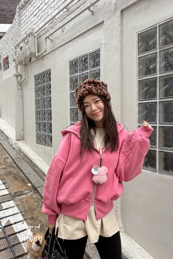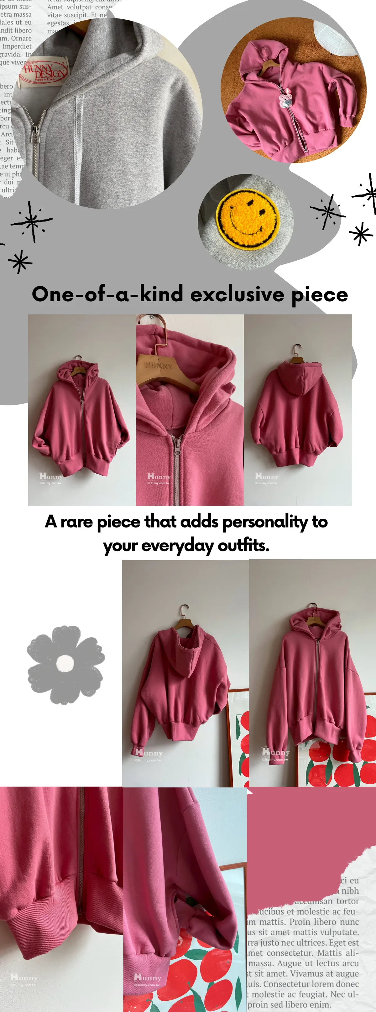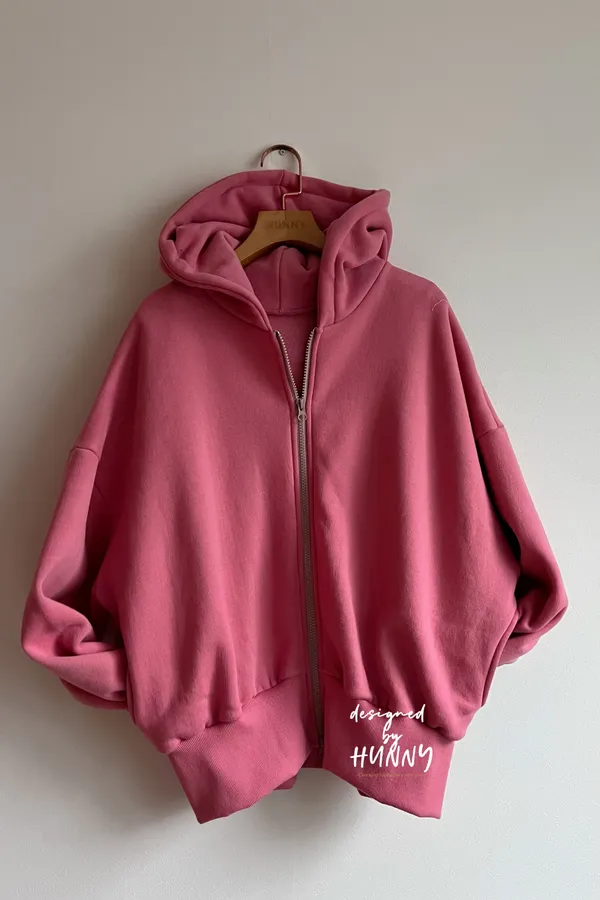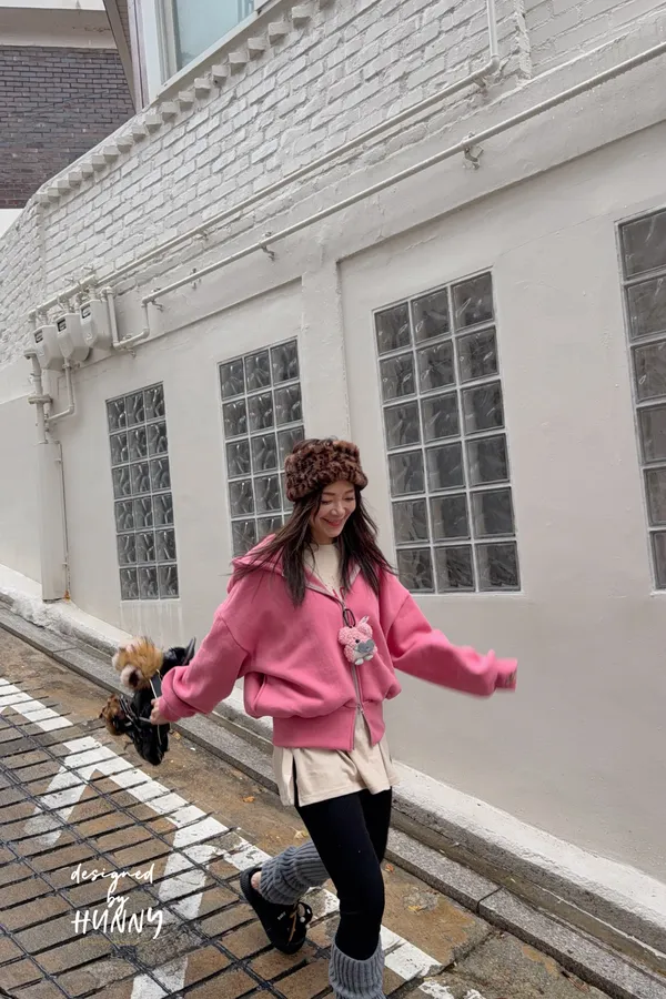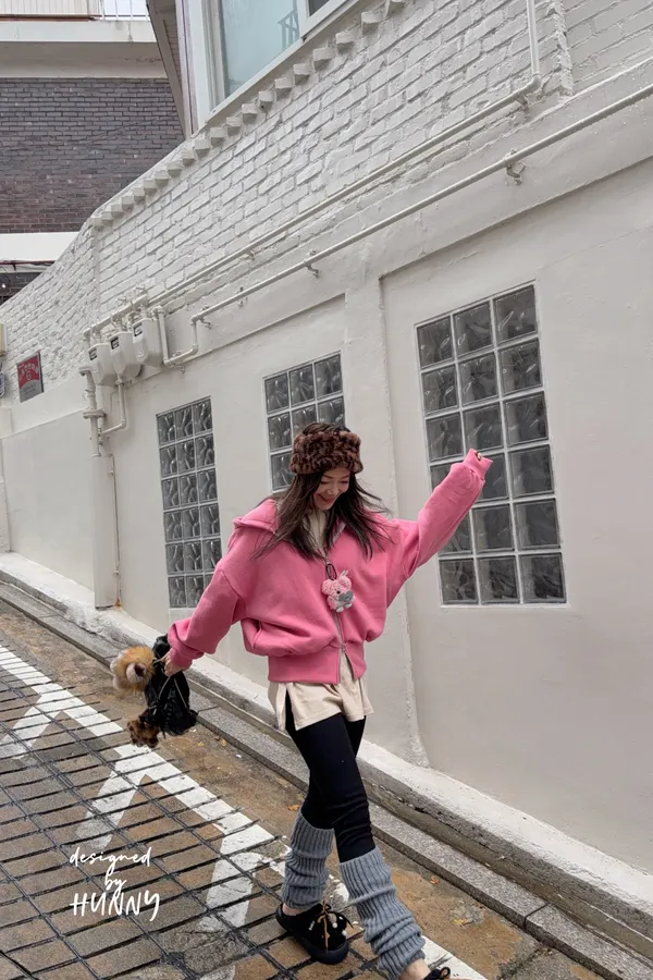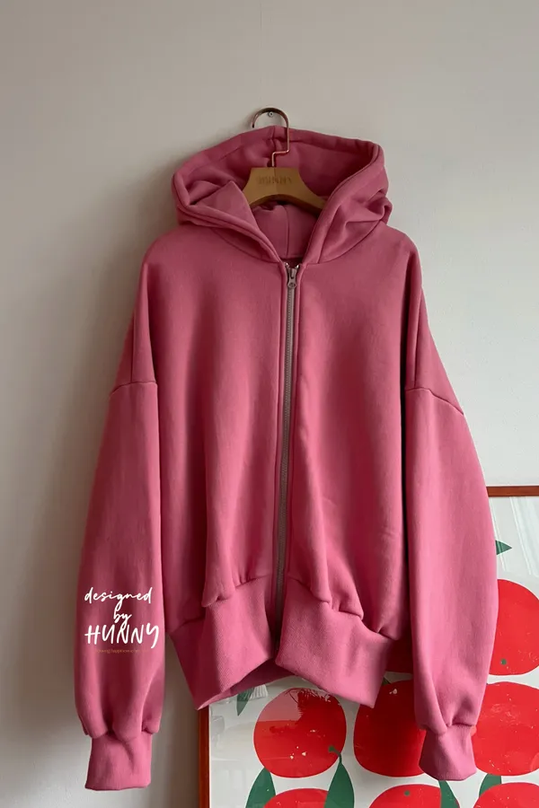 hunny788 世界唯一雙拉鏈厚棉刷毛連帽魟魚外 黑/蜜桃粉/灰