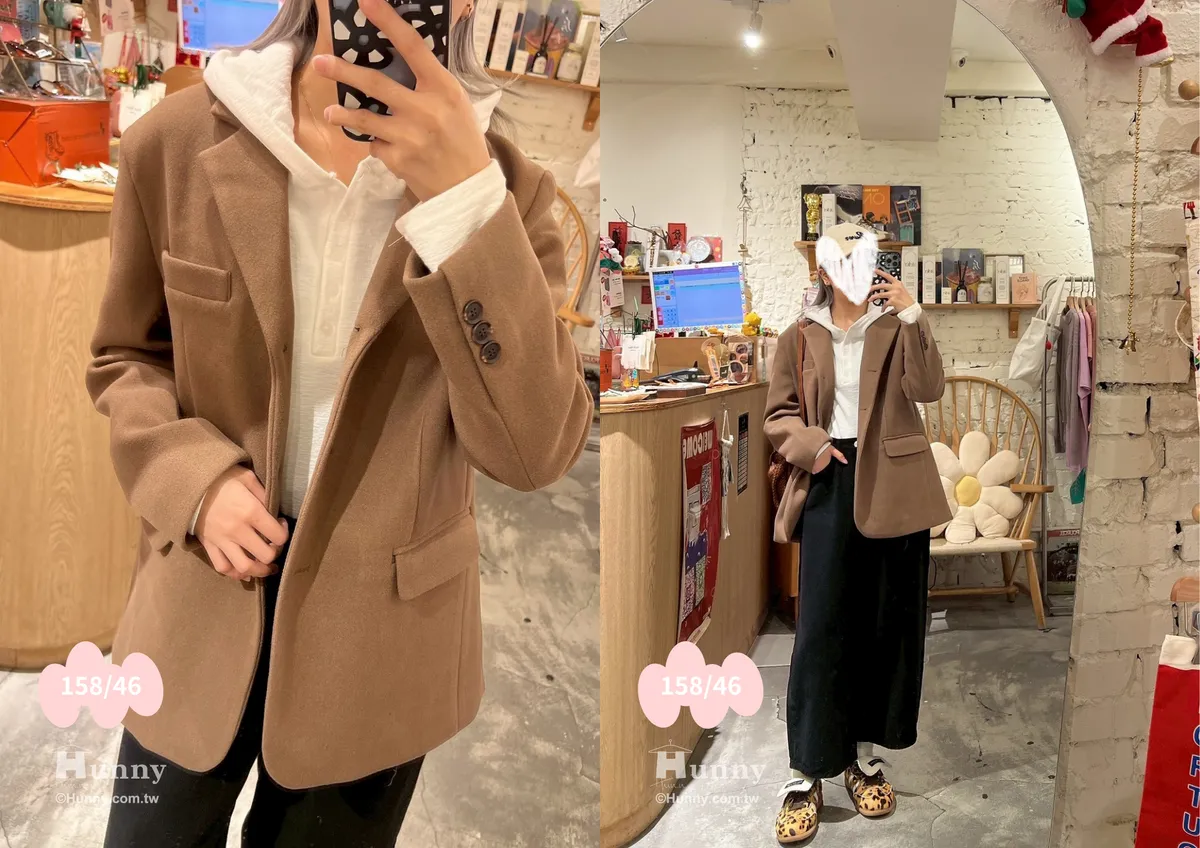 hunny793 獨家款 顯瘦濾鏡10%羊毛西裝外套 現貨黑