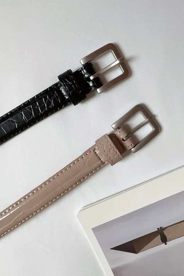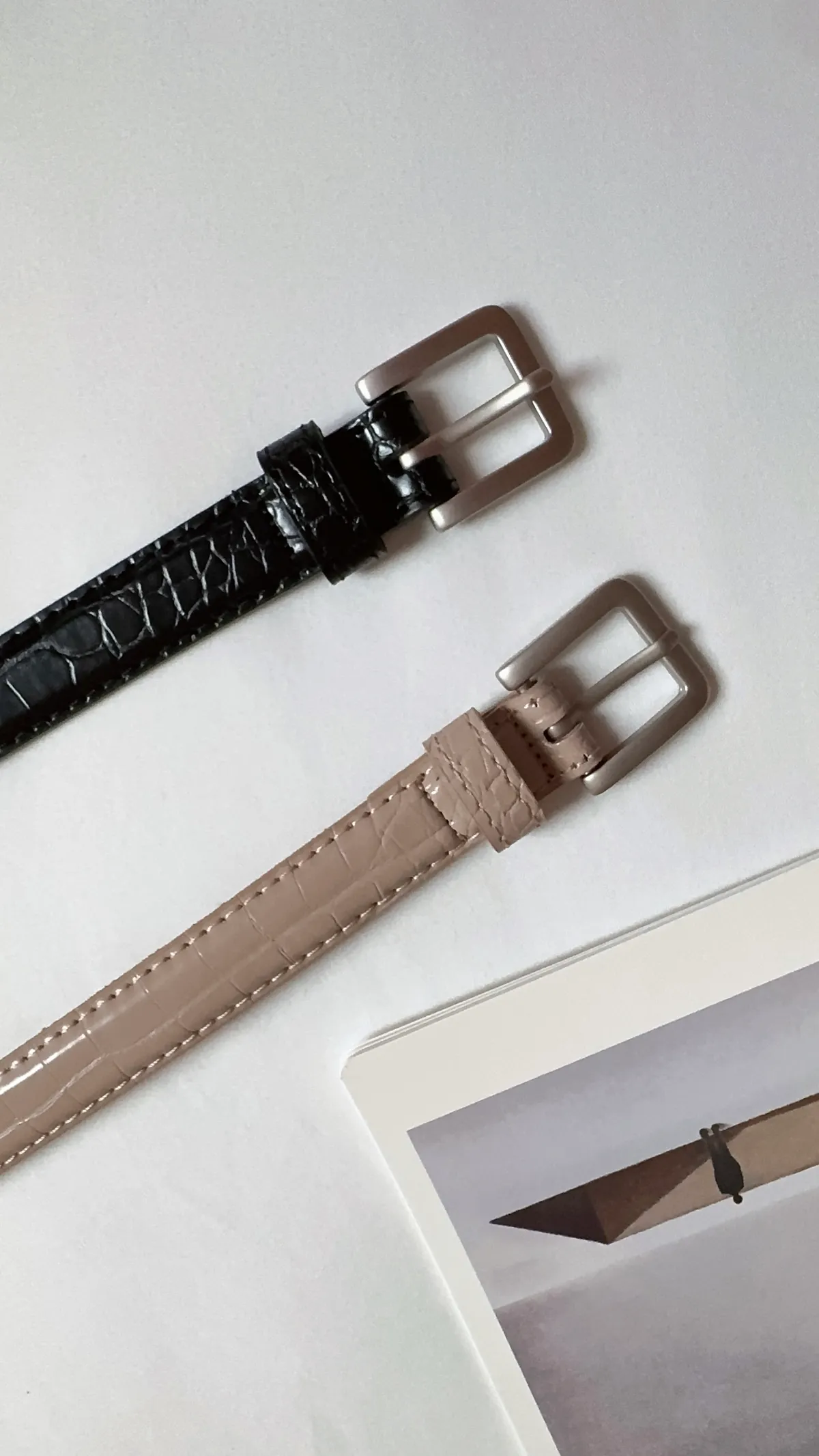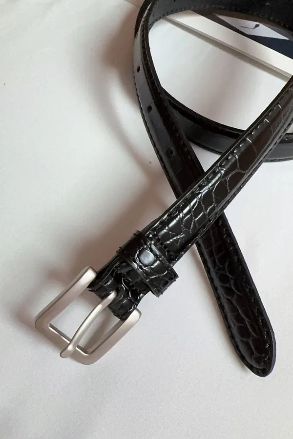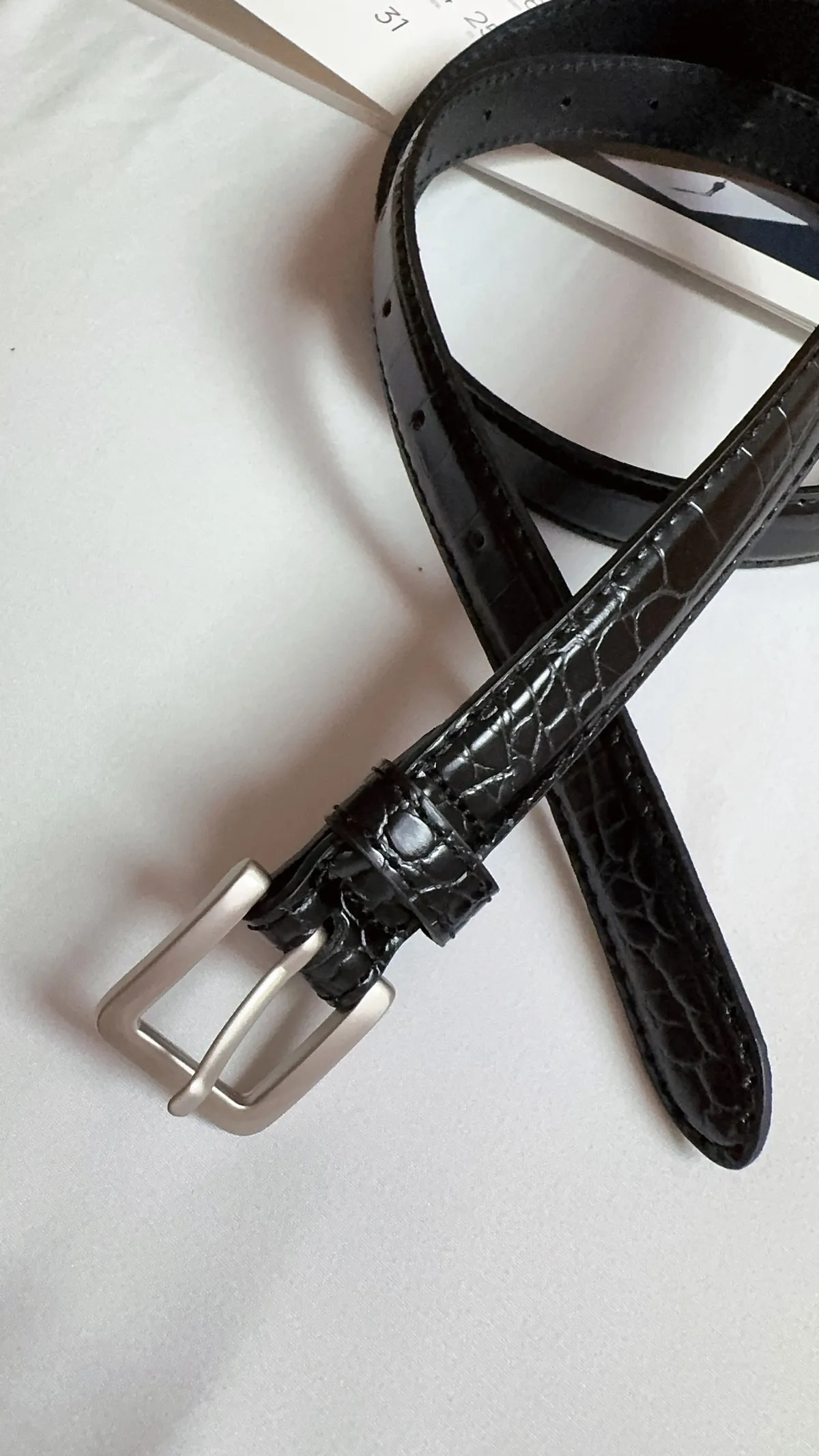 sp10 精品感牛皮鱷魚紋方銀扣皮帶 黑/杏/new焦糖