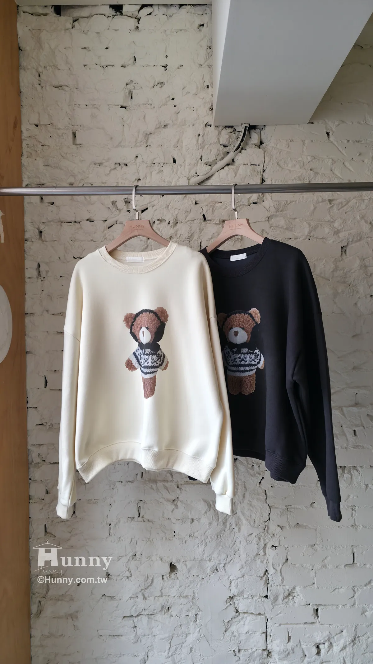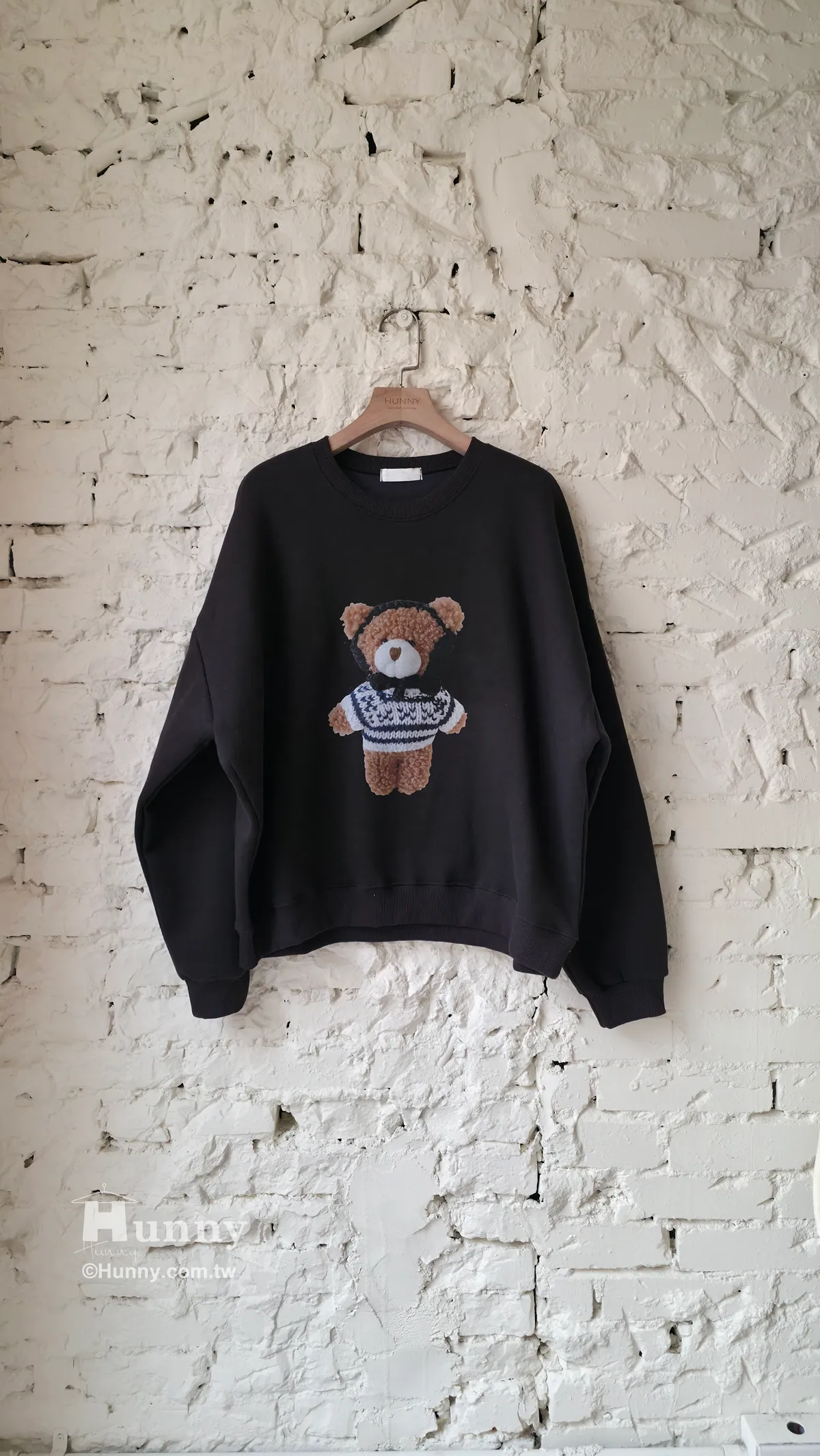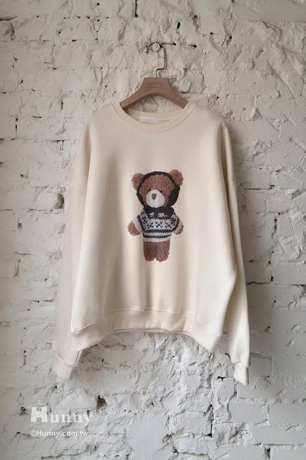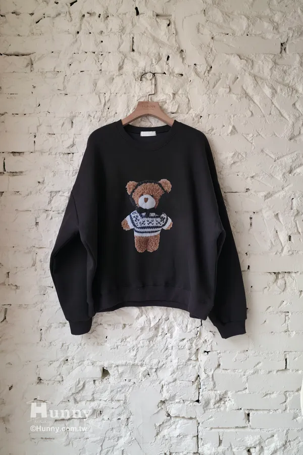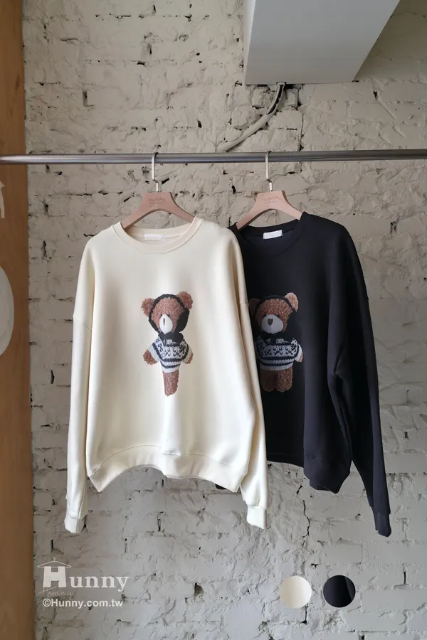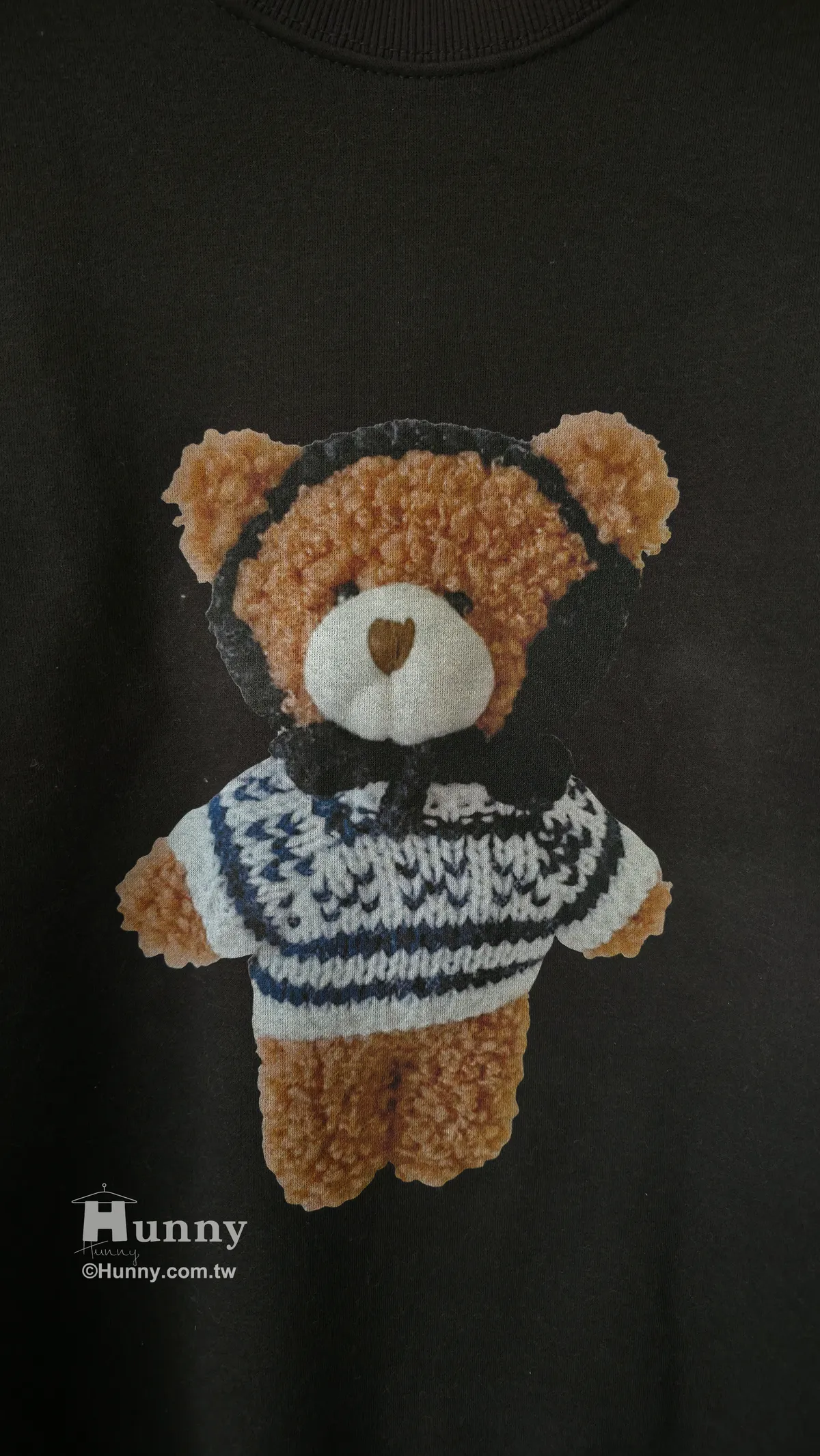 T121207 可愛的毛帽熊刷毛t 墨/灰/杏