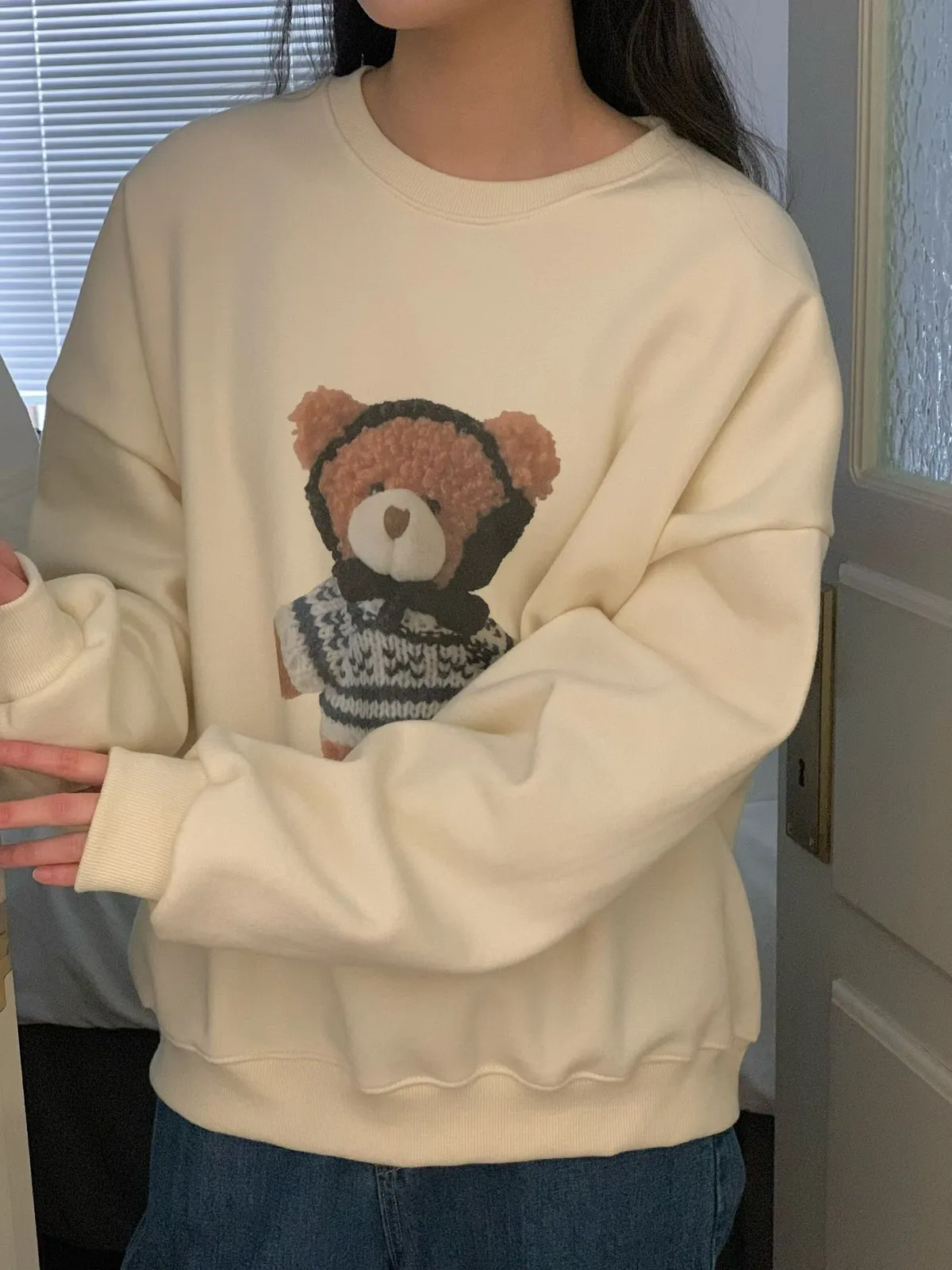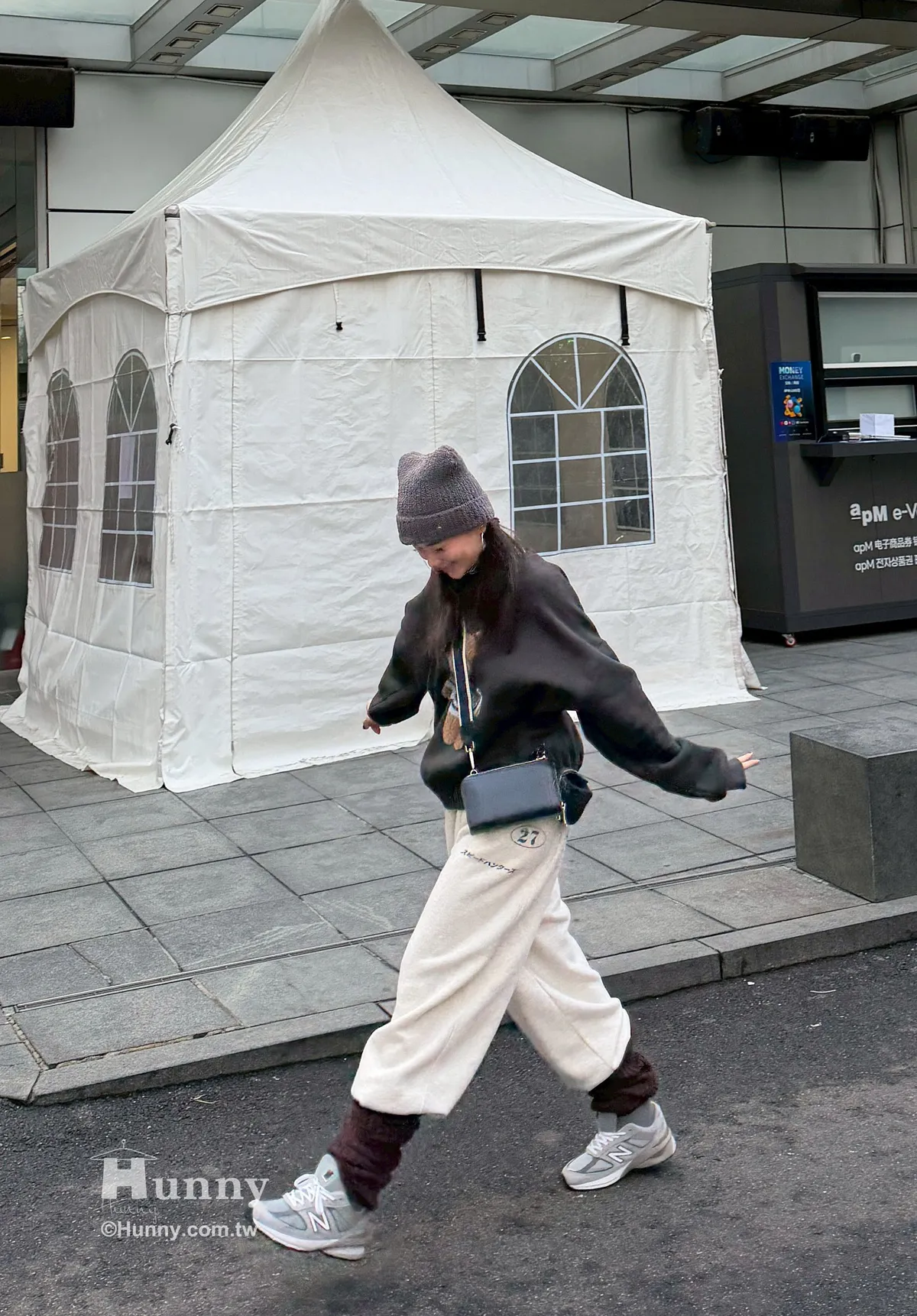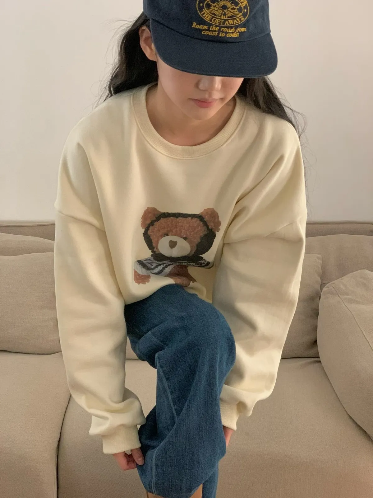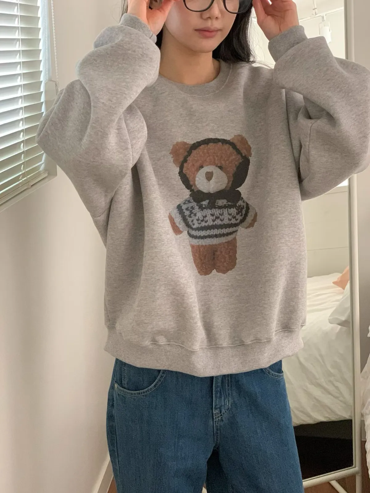 T121207 可愛的毛帽熊刷毛t 墨/灰/杏