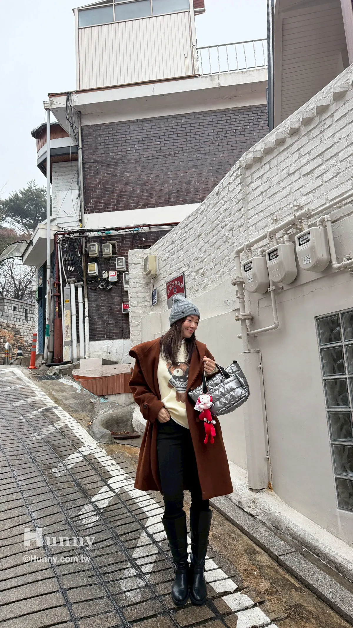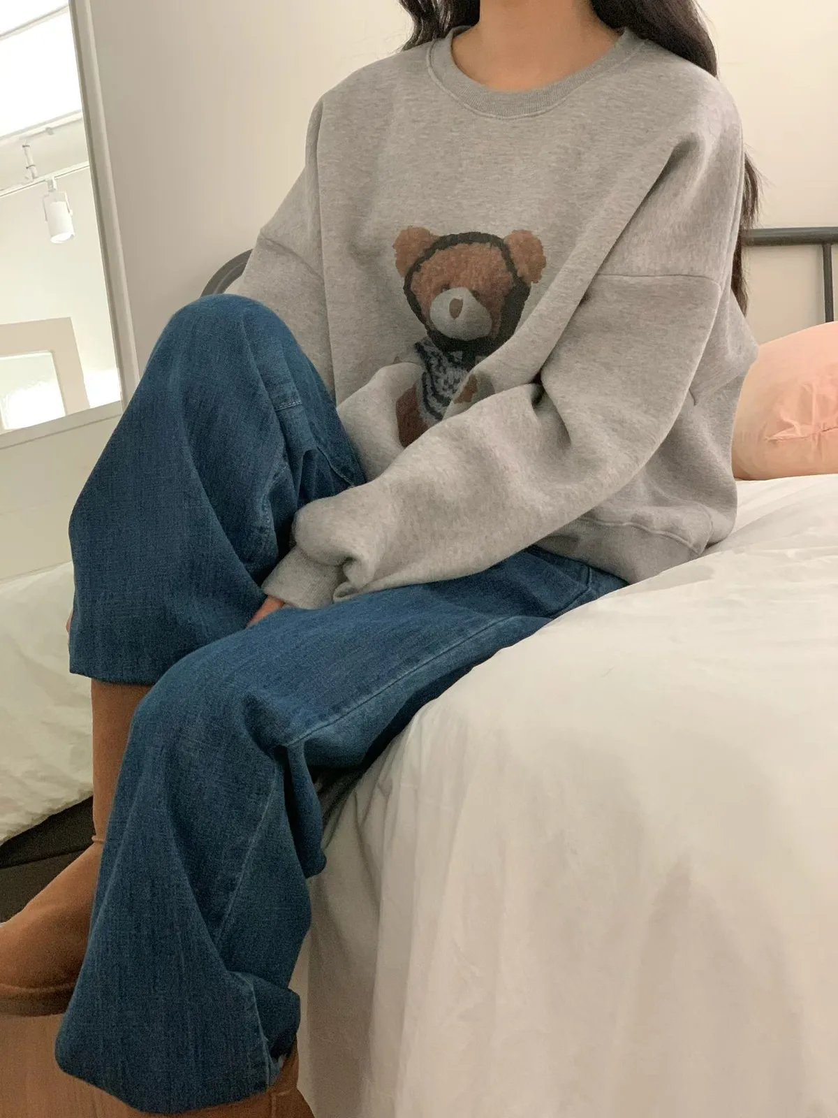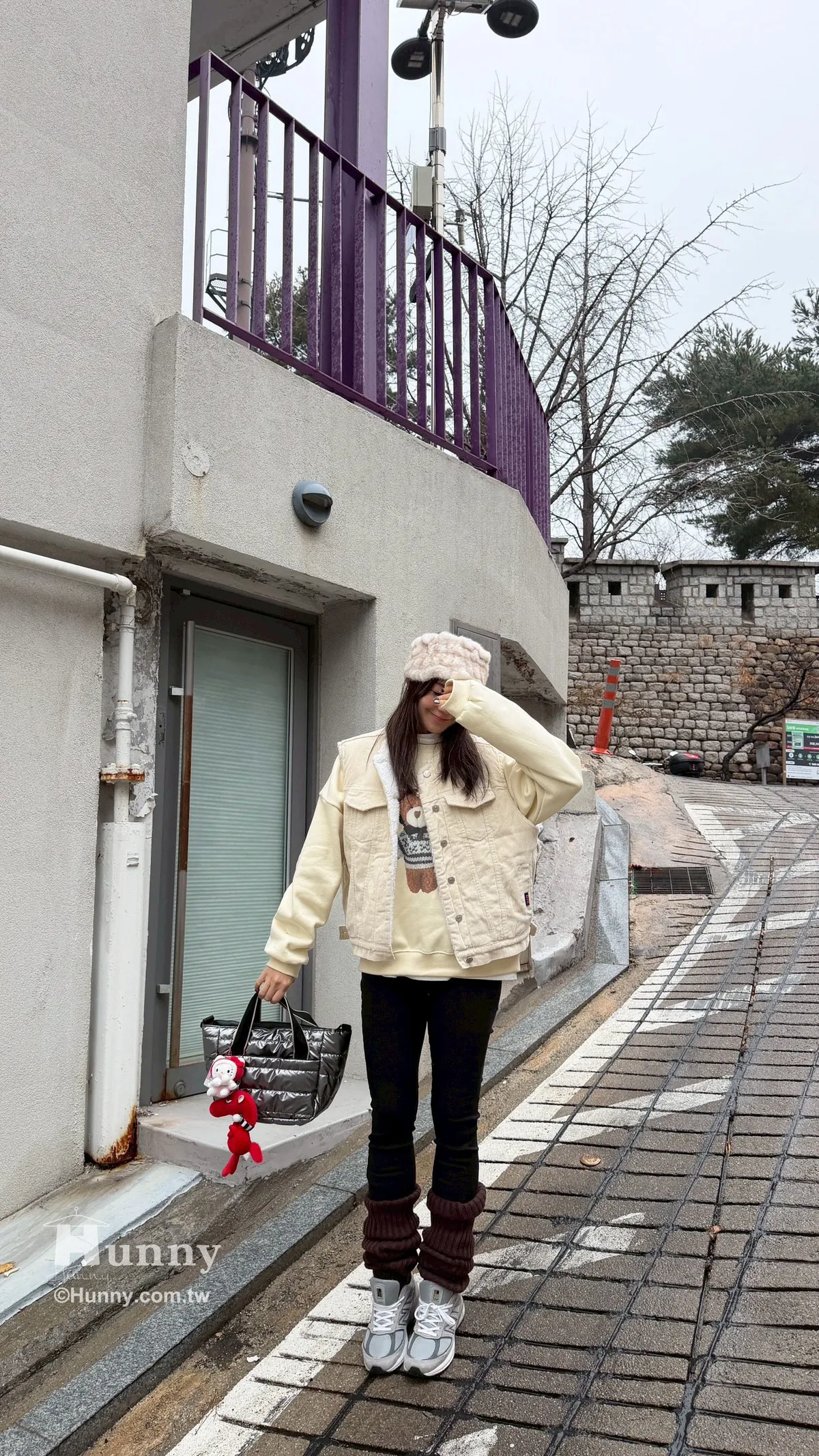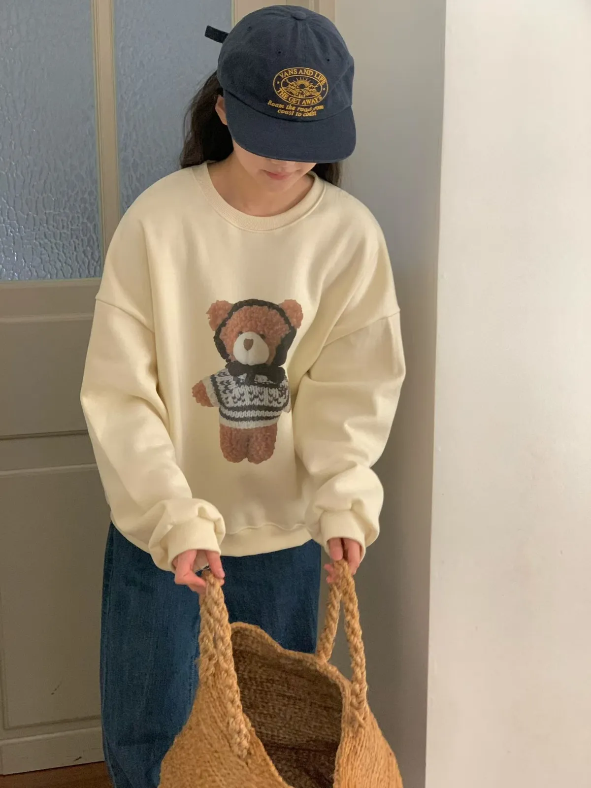 T121207 可愛的毛帽熊刷毛t 墨/灰/杏